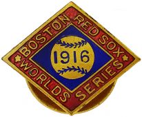 1916 World Fair press pins, matching teams. Boston Red Sox versus Boston Red Robins. Red Sox in four. Dieges & Clust; Bent & Bush Co., respectively.