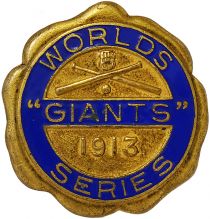 Arrive the 1911 World Series. One of John McGraw's favorite ploys was to fill the press box with his cronies, not sports writers. Free passes. Outstanding seats. This year the Philadelphia A's faced the New York Giants. Sports writer Stephen Grauley and close friend A's manager Connie Mack, anticipating McGraw's move, created the press pin, allowing access to the box only be those wearing them. McGraw checkmated. From this moment on, in each successive year, a specifically designed pin for participating teams was produced. Today, they are collectible. All thanks to a misbehaving man.