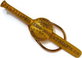 10k yellow gold Connie Mack Philadelphia Athletics fiftieth anniversary - 1894-1944. These tie bars were given to VIP celebrants honoring Connie Mack. The trail to whom the pin belonged has been lost.