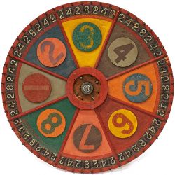 Saturday, we touch a form of Bucks County Folk Art, yet unrecognized. Gambling roulette wheels. Complete with numbered playing boards. They arrive to us from storage in the Lingohocken Fire Company. They date mid-century, perhaps earlier.