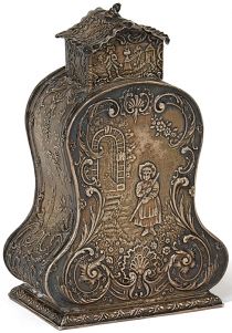 .800 silver tea caddy, Hanau, Germany, Storck & Sinsheimer,