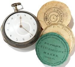George III verge fusee sterling case pocket watch, 1796, by William Roberts. York, Pennsylvania watch papers included.