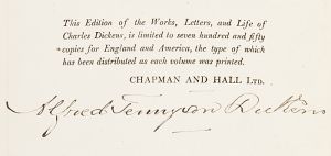 Signature of Charles Dicken's sixth child - Alfred Tennyson Dickens, written within the book.