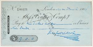 Check signed by Charles Dickens, written to Miss Dickens and house, 1860, in the amount of nine pounds.