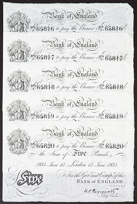 Sequential serial numbers. London cashier Kenneth Oswald Peppiatt.