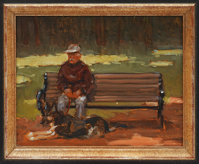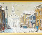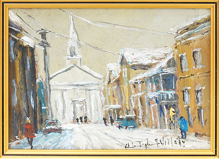 800Christopher Willett, Oil Painting on Board, "Walking for Coffee, Lambertville, NJ"5" x 7".