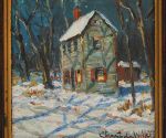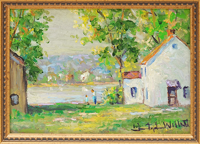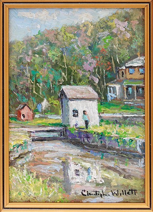 801Christopher Willett, Oil Painting on Board, "By Lake House Inn, Lake Nockamixon"5" x 7".