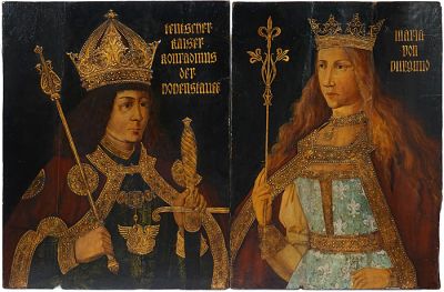 Pair of oil portraits on wood panels. From the House of Hohenstauff featuring endless aristocrats from the Holy Roman Empire, 36" x 28' 24" respectively.