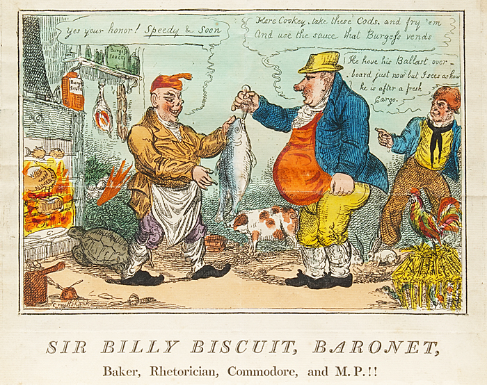 "Sir Billy Biscuit, Baronet" Hand Colored Etching by Cruikshank