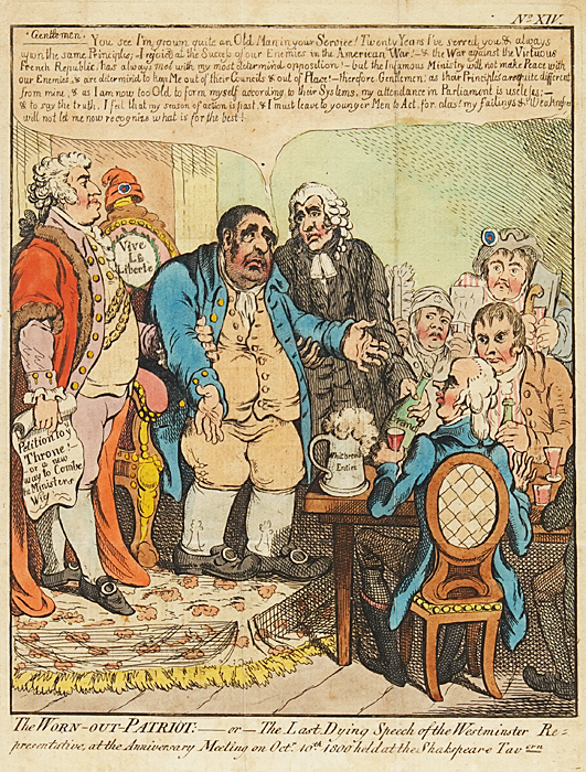 "The Worn-Out Patriot" Hand Colored Etching by James Gilroy
