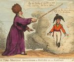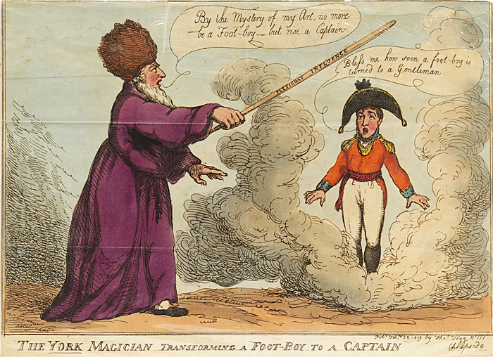 "The York Magician Transforming a Foot-Boy to a Captain" Hand Colored Etching by Thomas Rowlandson